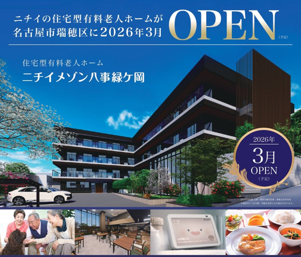 名古屋市瑞穂区に2026年3月 新規開設(予定)の「住宅型有料老人ホーム ニチイメゾン八事緑ケ岡」入居事前相談会を12月12日(金)・13日(土)・14日(日)に岡谷鋼機名古屋公会堂で開催いたします。 施設やサービスのこと、ご入居に関する疑問やそのほか介護のお悩みなど、何でもご相談いただけます! ご来場の方には、プレゼントもご用意しています。