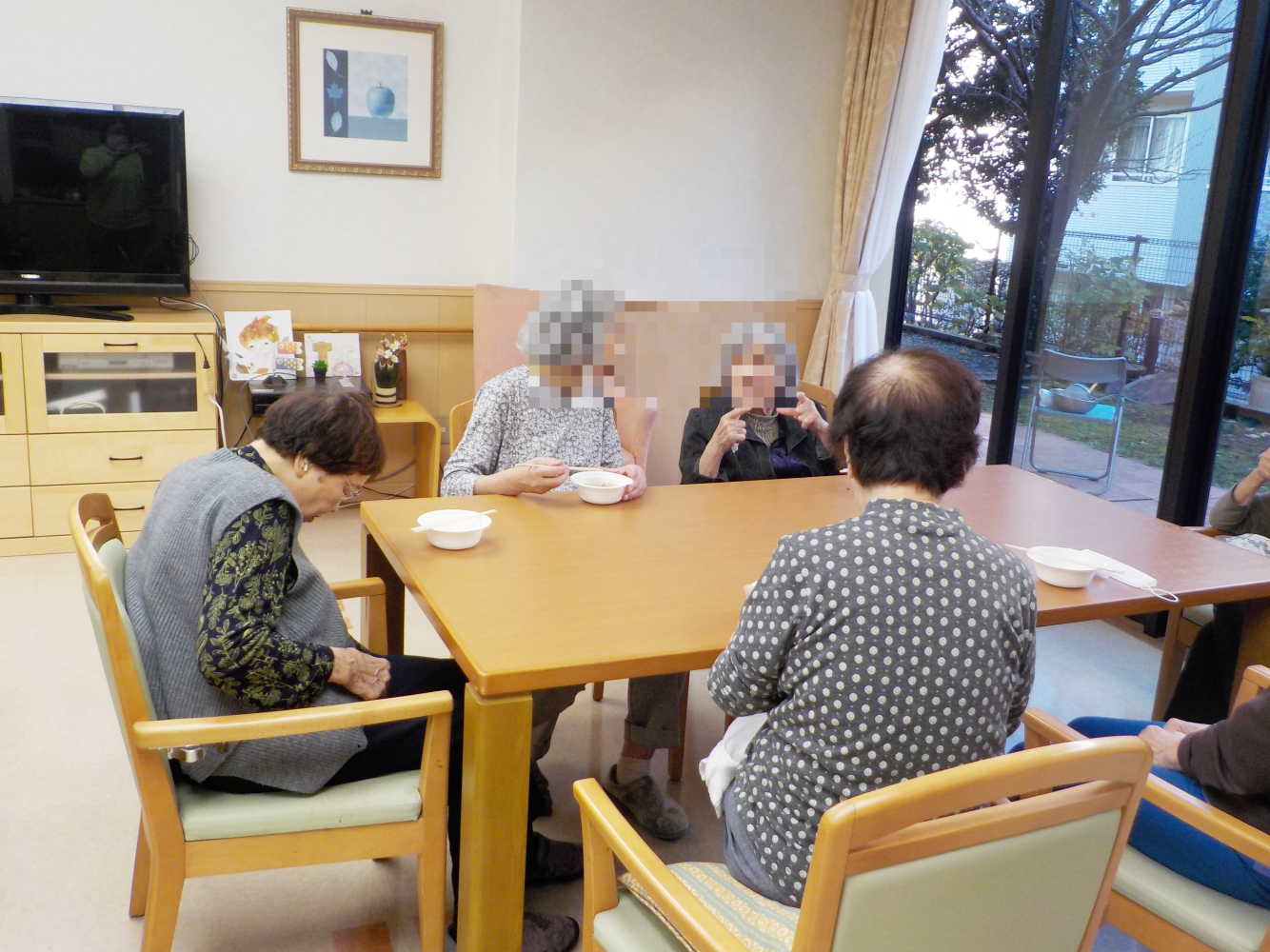 豚汁作りを行いました。お客様皆様で協力しながら豚汁を作り、出来上がった美味しい豚汁を召し上がっていただきました。また、非常食の試食も行い、「意外と美味しい」との声も聞かれ、いざという時にも安心できることを確認しました。