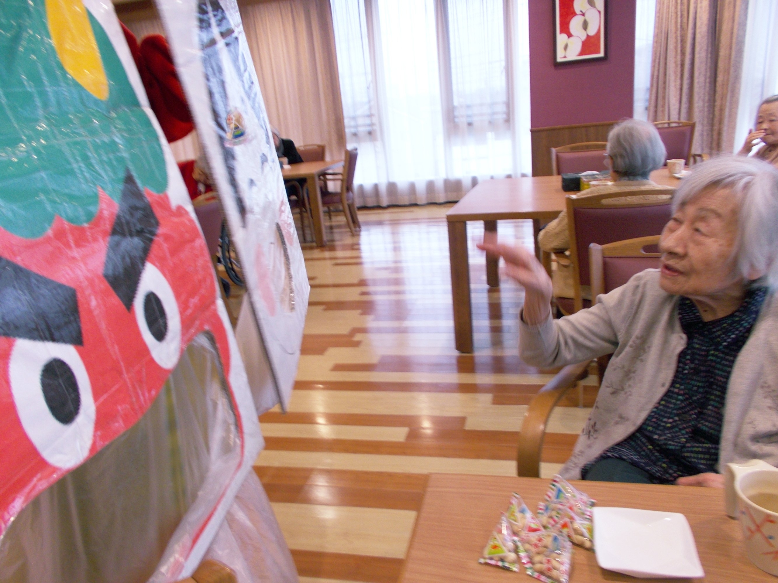 今年も節分の行事を開催しました鬼に扮したスタッフが鬼のボードを持ち、お客様にはお手玉を投げていただき鬼退治をしていただきました。皆様、力強く投げて見事に厄払いをし、最後は鬼とも仲良く記念撮影を行いました。