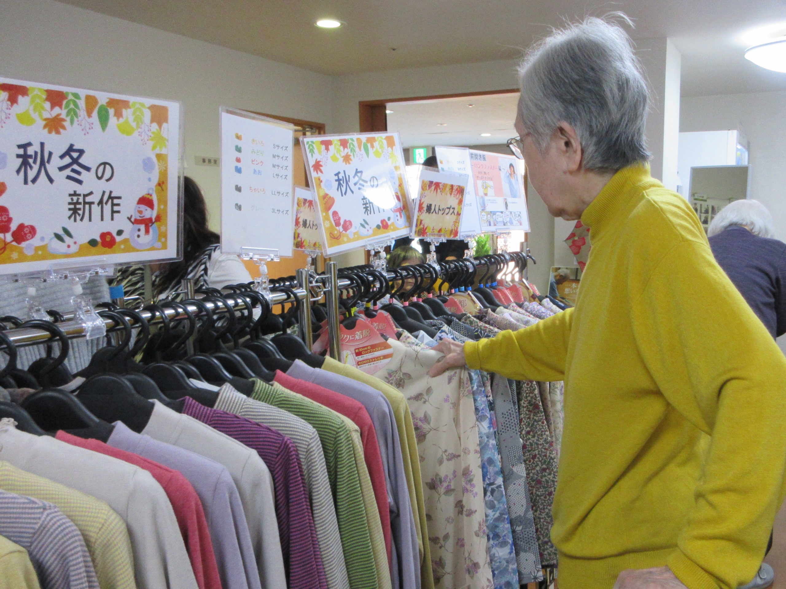 年に2回行っている恒例イベント「衣類販売会」を開催しました。今回は秋冬衣類の販売です。季節にぴったりの暖かい素材や、デザイン性の高いお洋服が並び、皆さま大変喜ばれていました。