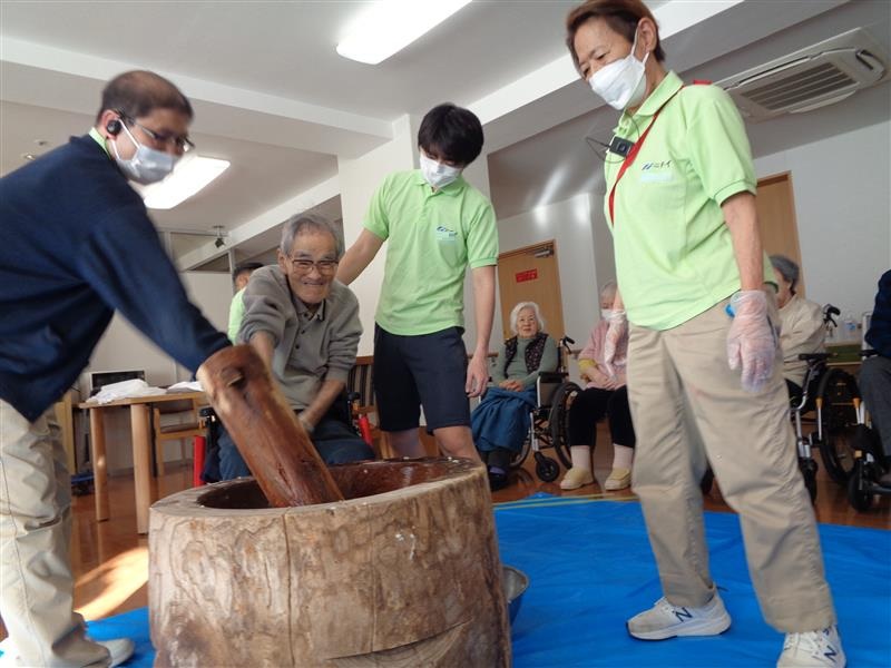 恒例のお餅つきを年末に開催いたしました。お客様にもご参加いただき新年に飾る鏡餅を作ることができました。皆さま奮ってご参加くださり楽しい午後の時間でした。