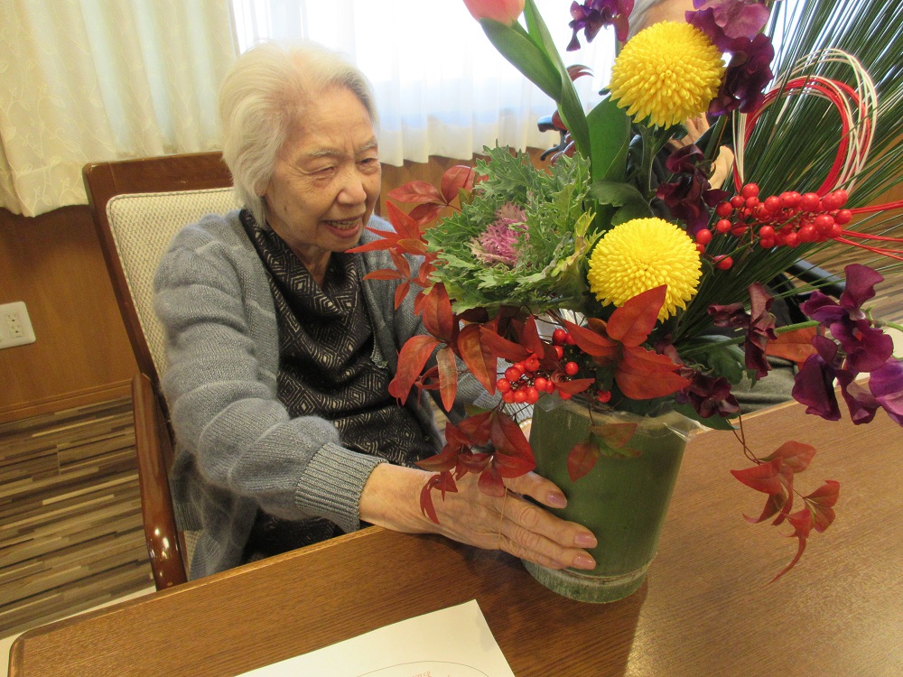 ニチイホーム朝霞では、フラワーアレンジメントが人気です。季節ごとに彩り豊かな花々を使い、お客様お一人おひとりの感性や個性が作品に表れます。