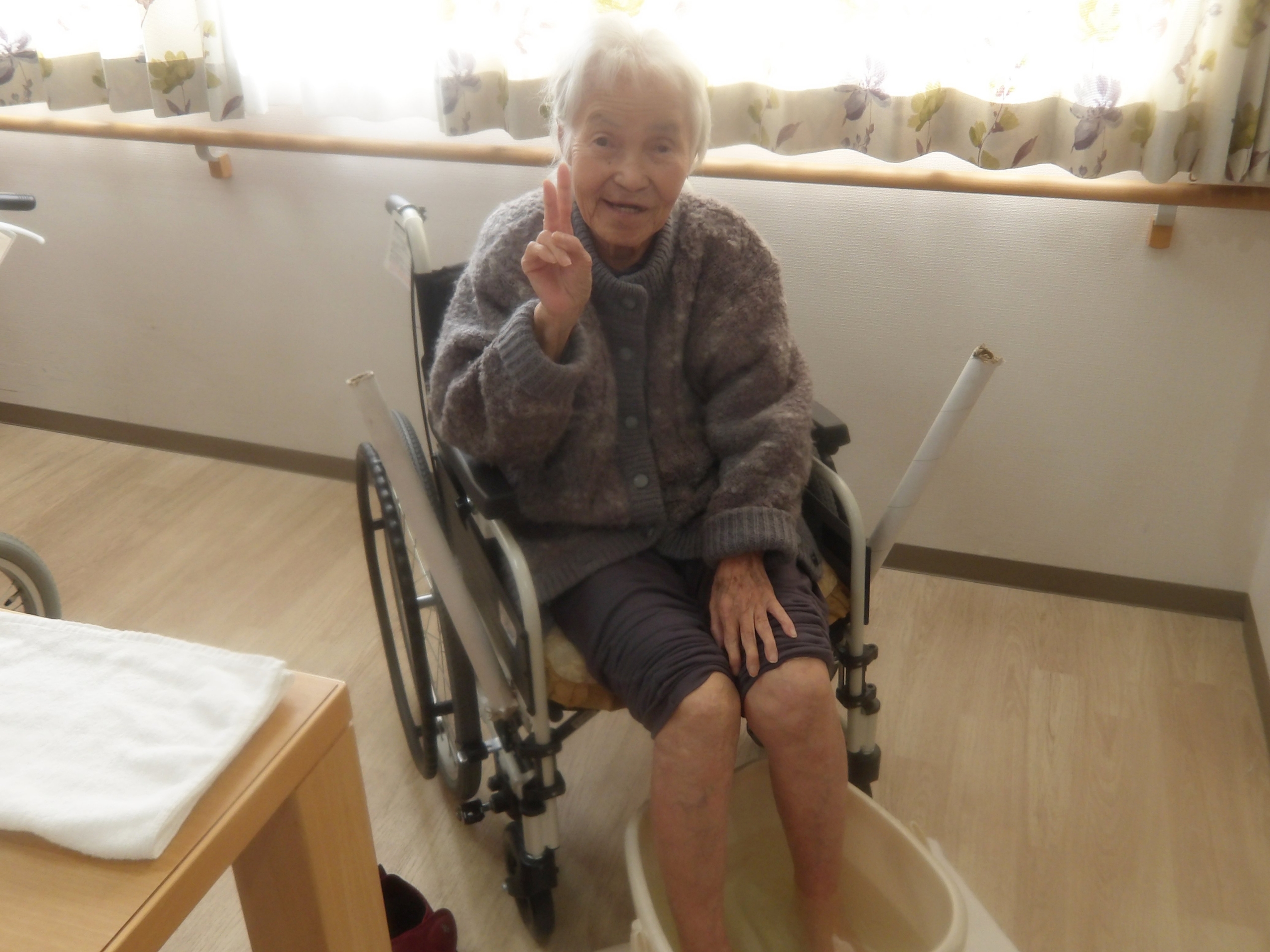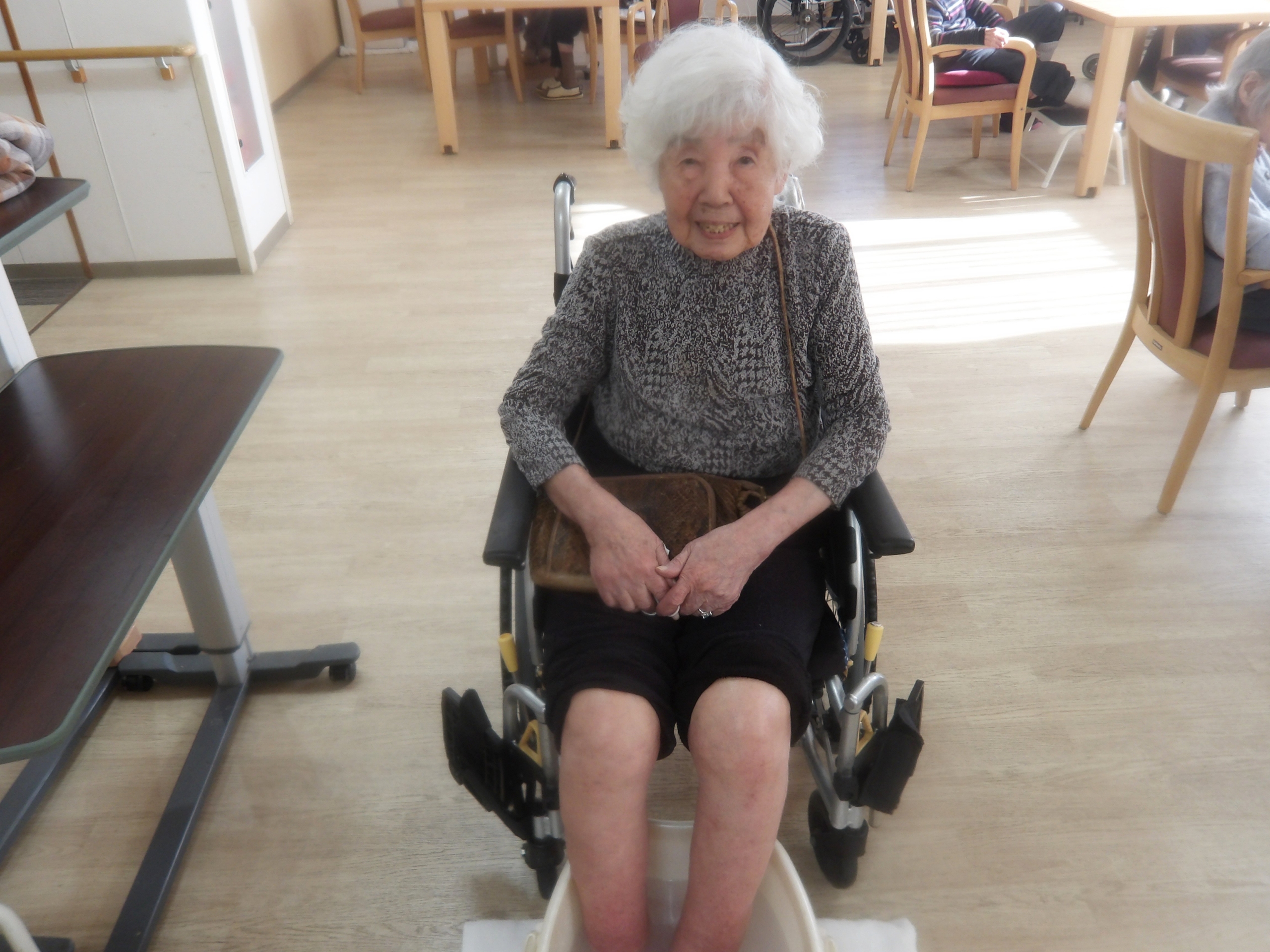 寒い日が続く中、足元から温まっていただこうと、温泉の素を入れた足浴を行いました。