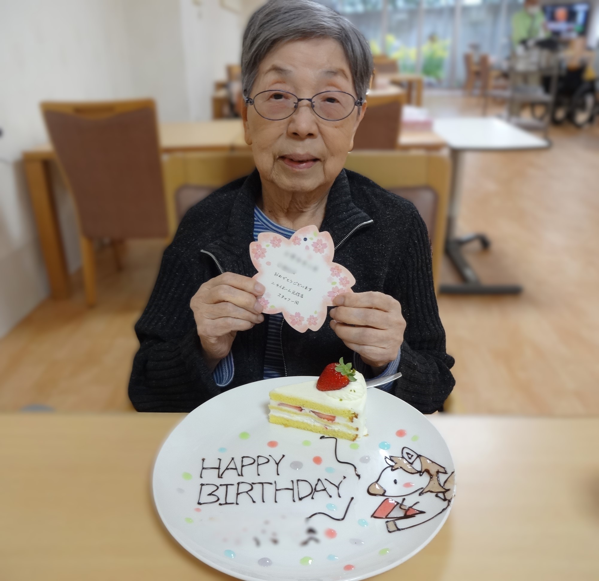 今月は、イチゴのショートケーキをご用意しました。お誕生日を迎えた方には、デコレーションプレートを添えてお祝いしました。