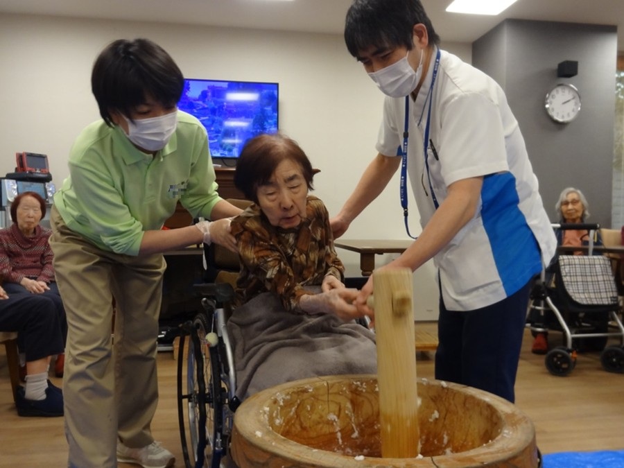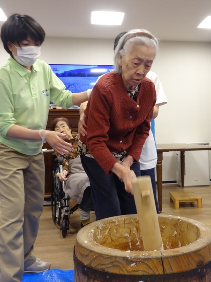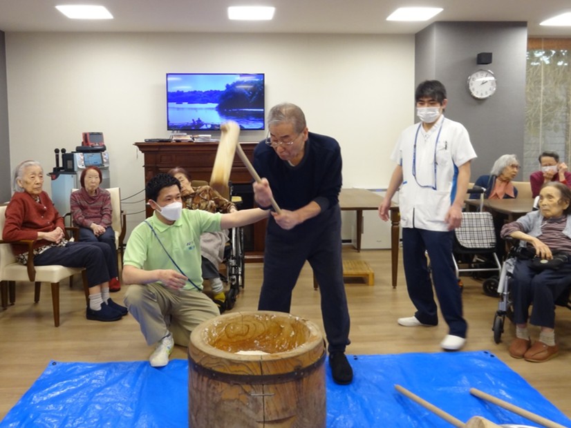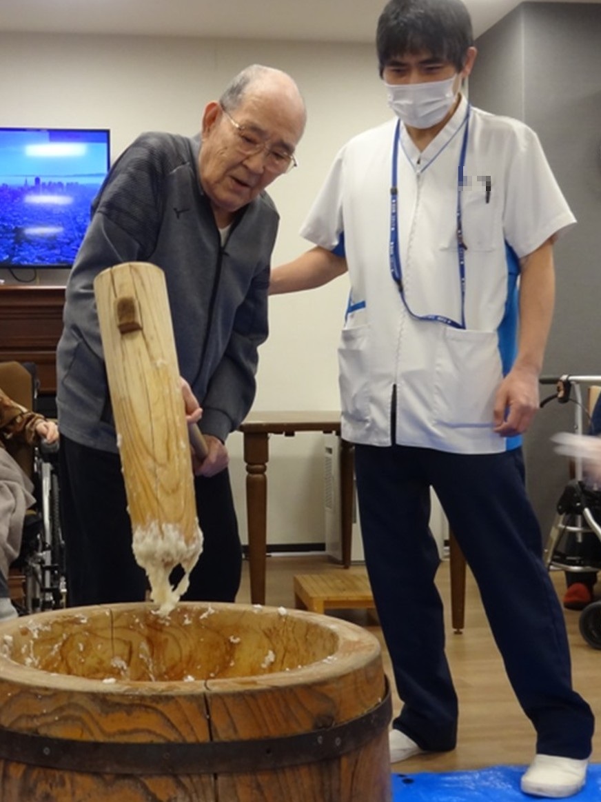 新年あけましておめでとうございます。ホームではお餅つきを行いました。