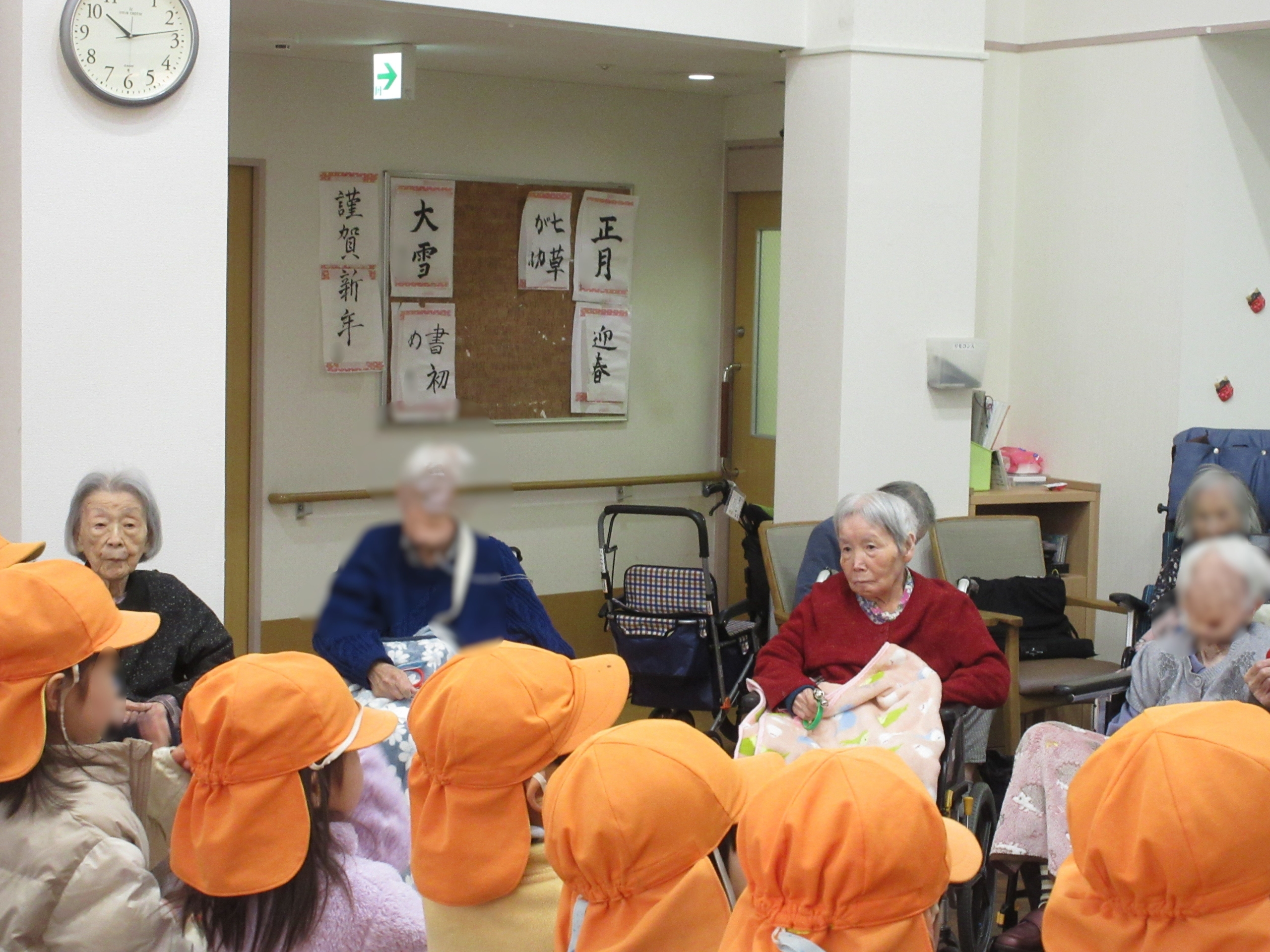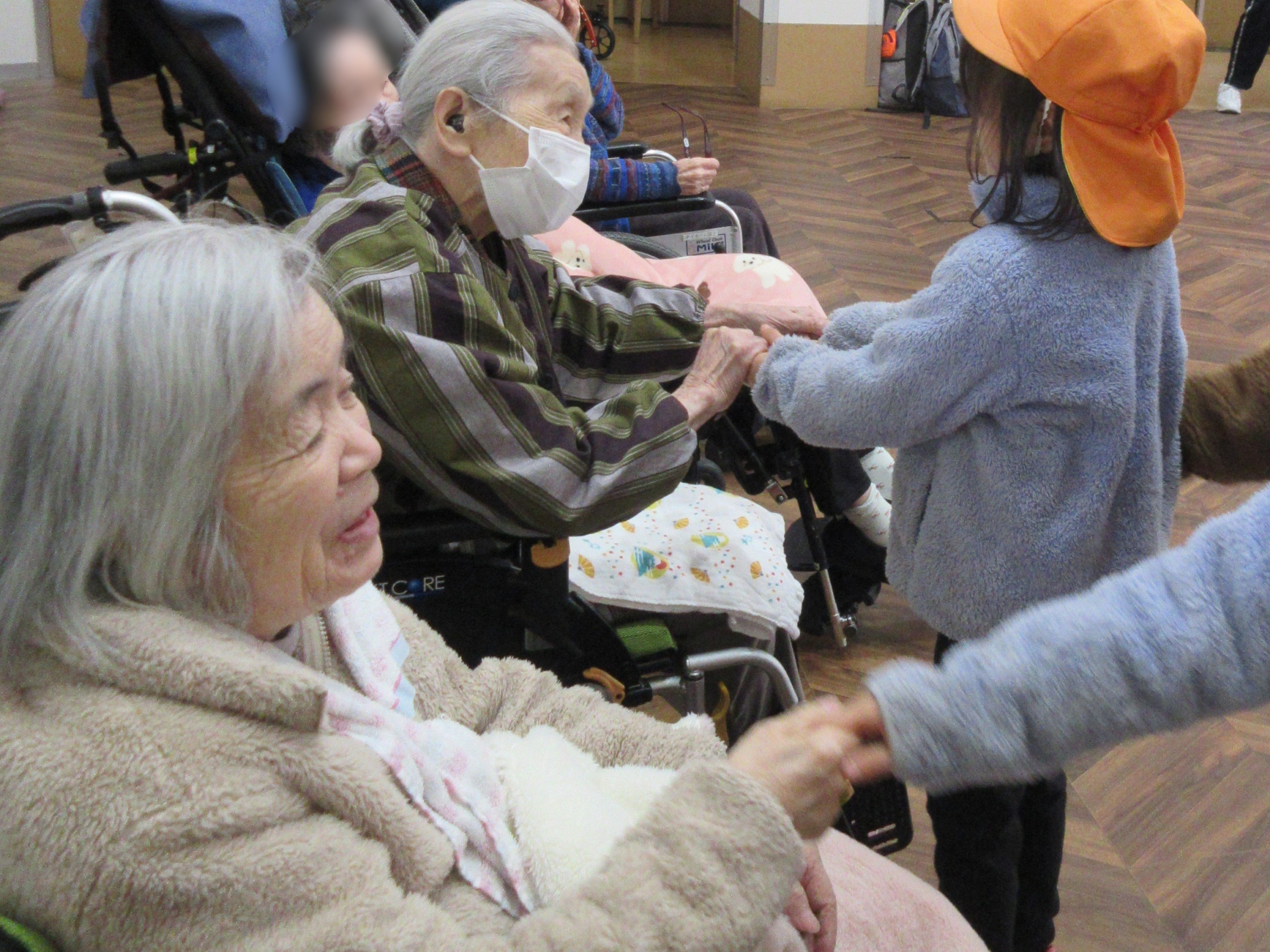 1月28日に保育園との交流会を行いました。カスタネットやタンバリン、鈴を手に、園児たちの歌声に合わせて一緒に演奏。懸命に歌う姿にリズムを合わせる様子が、とても印象的でした。 園児たちが両脇に並ぶと、自然と手をつなぐ場面も見られ、笑顔あふれる温かなひとときとなりました。