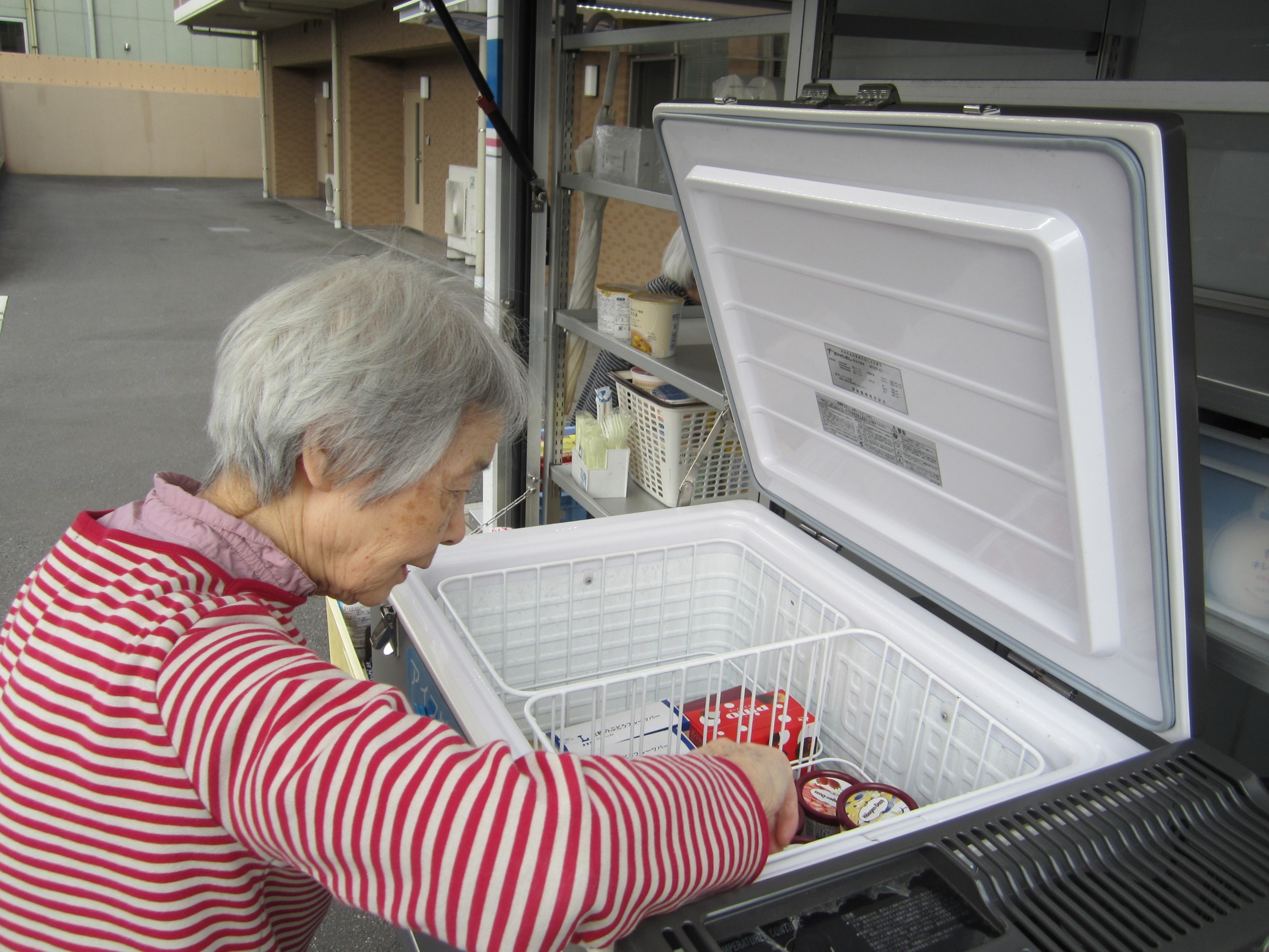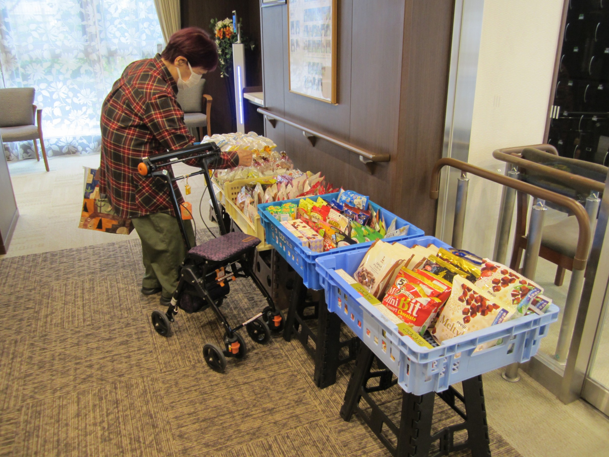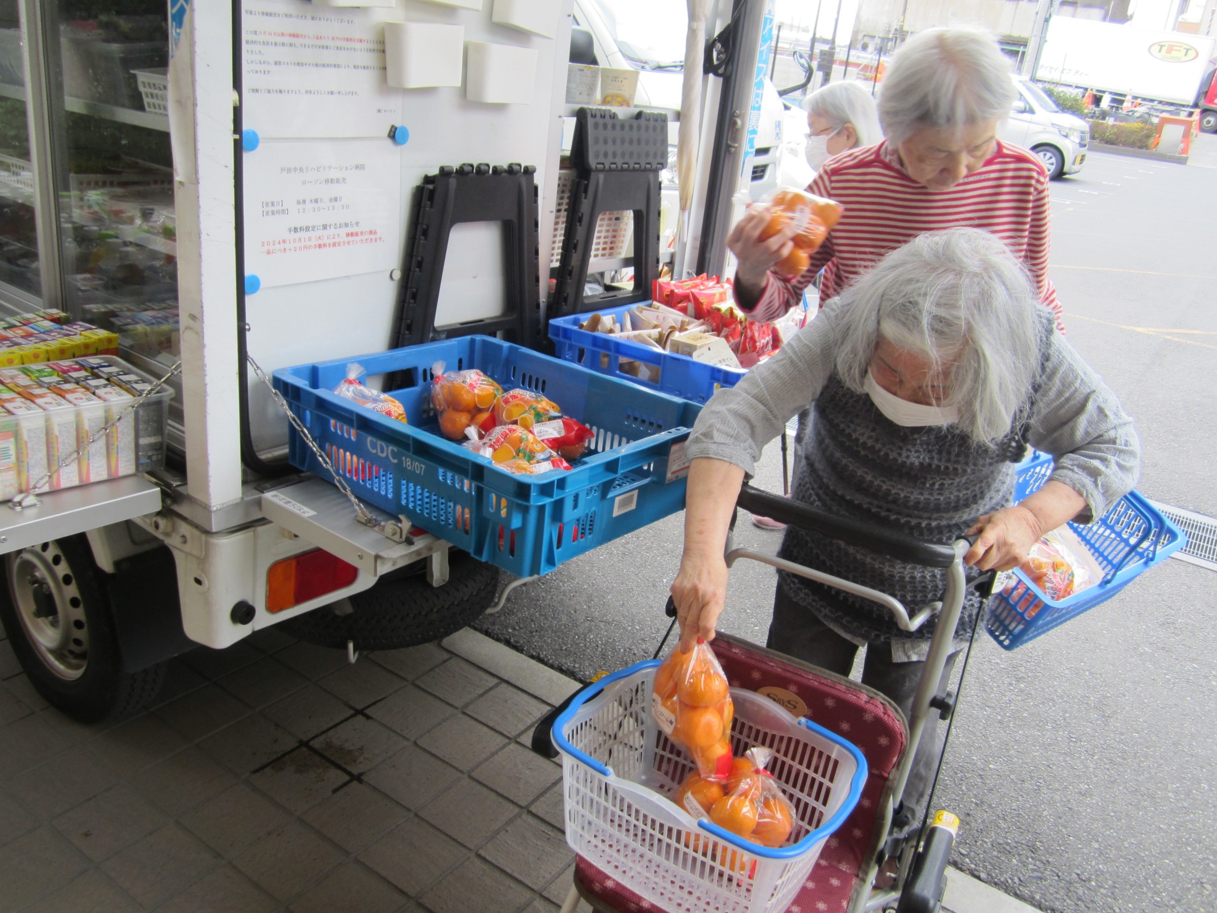 ホームにコンビニの移動販売が来訪しました。みかんやアイス、お菓子などを手に取って楽しまれる方も多く、「どれにしようかしら」とじっくり選ばれる姿が印象的でした。 中には「孫の分まで買っちゃった!」と嬉しそうに話されるお客様もおり、移動販売ならではのにぎやかで温かいひとときとなりました。