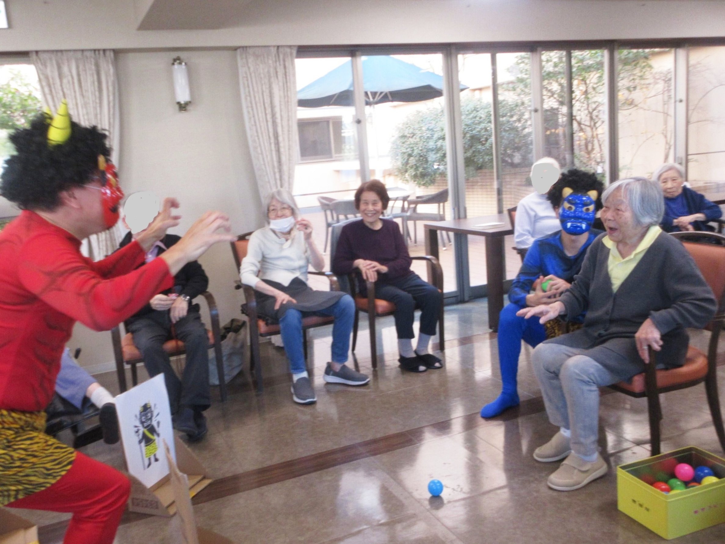 今年も赤鬼青鬼が登場!的あてゲームで鬼を退治して頂いたり、鬼の歌謡ショーが有ったりと、少しユニークな節分イベントとなりました。皆様にたくさん福がきますように。