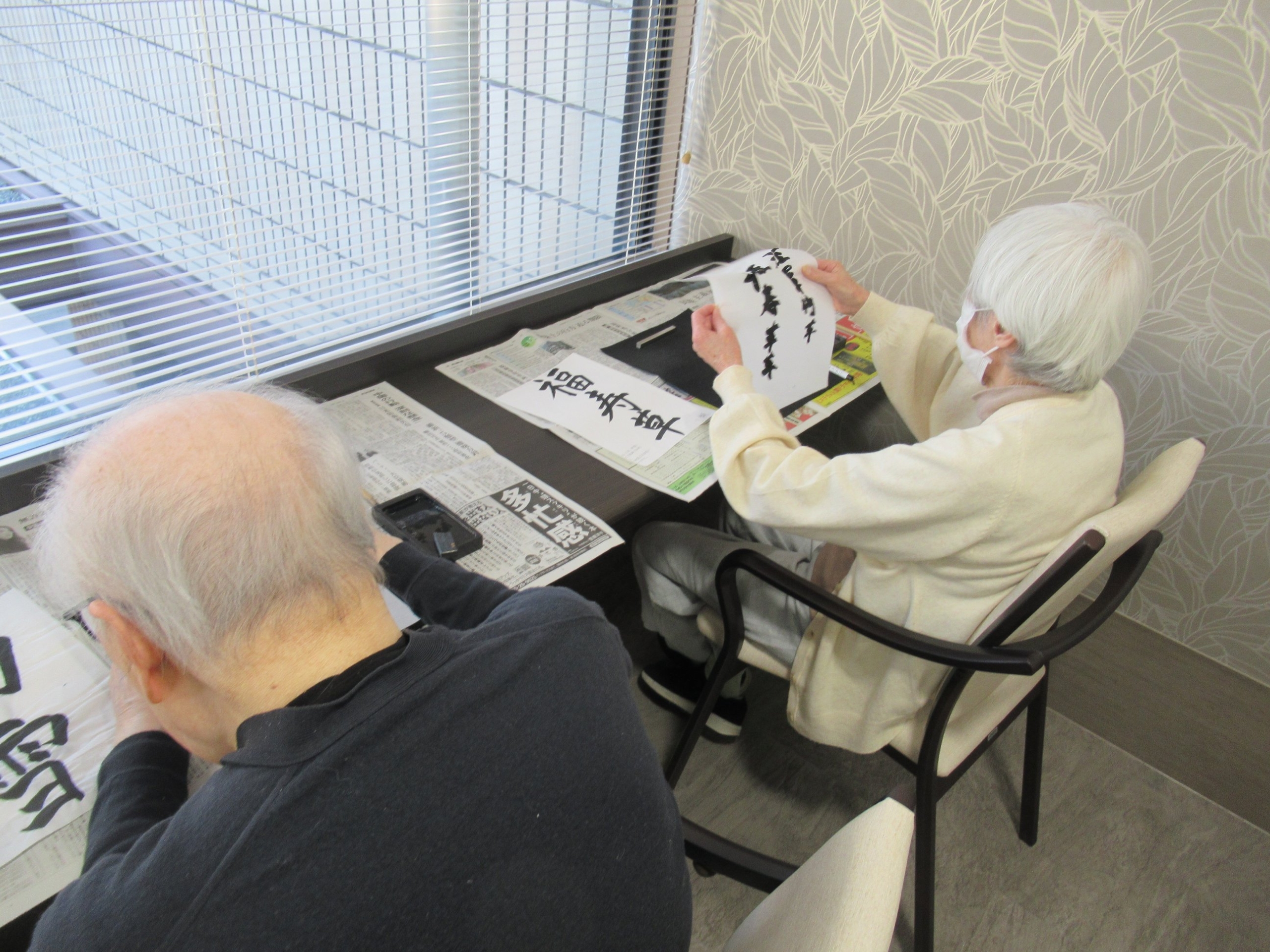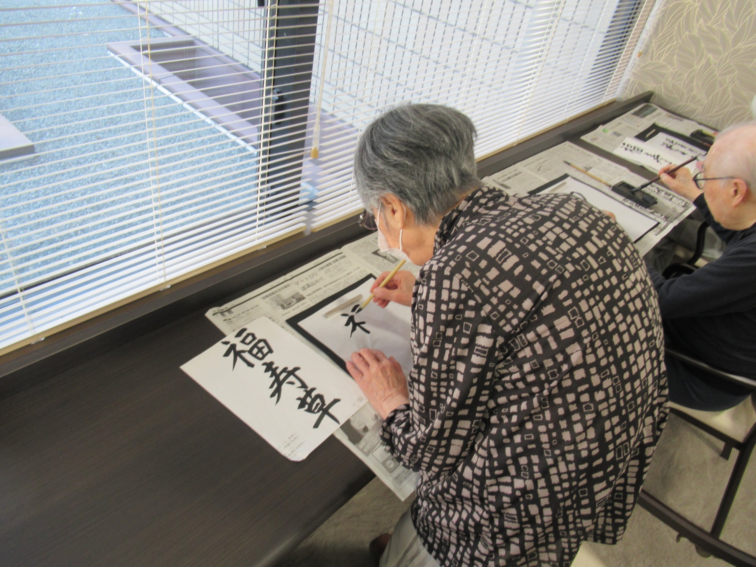 定期的に書道サークルを開催しています。昔から書道を嗜まれていたお客様もいらっしゃり、毎回多くの方にご参加いただく人気の活動となっています。