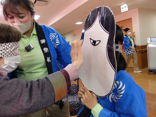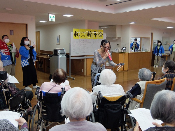 本日は、お客様と一緒に「新年の集い」をお祝いしました。会場では福笑いやおみくじをご用意し、皆さま笑顔で楽しんでいただきました。