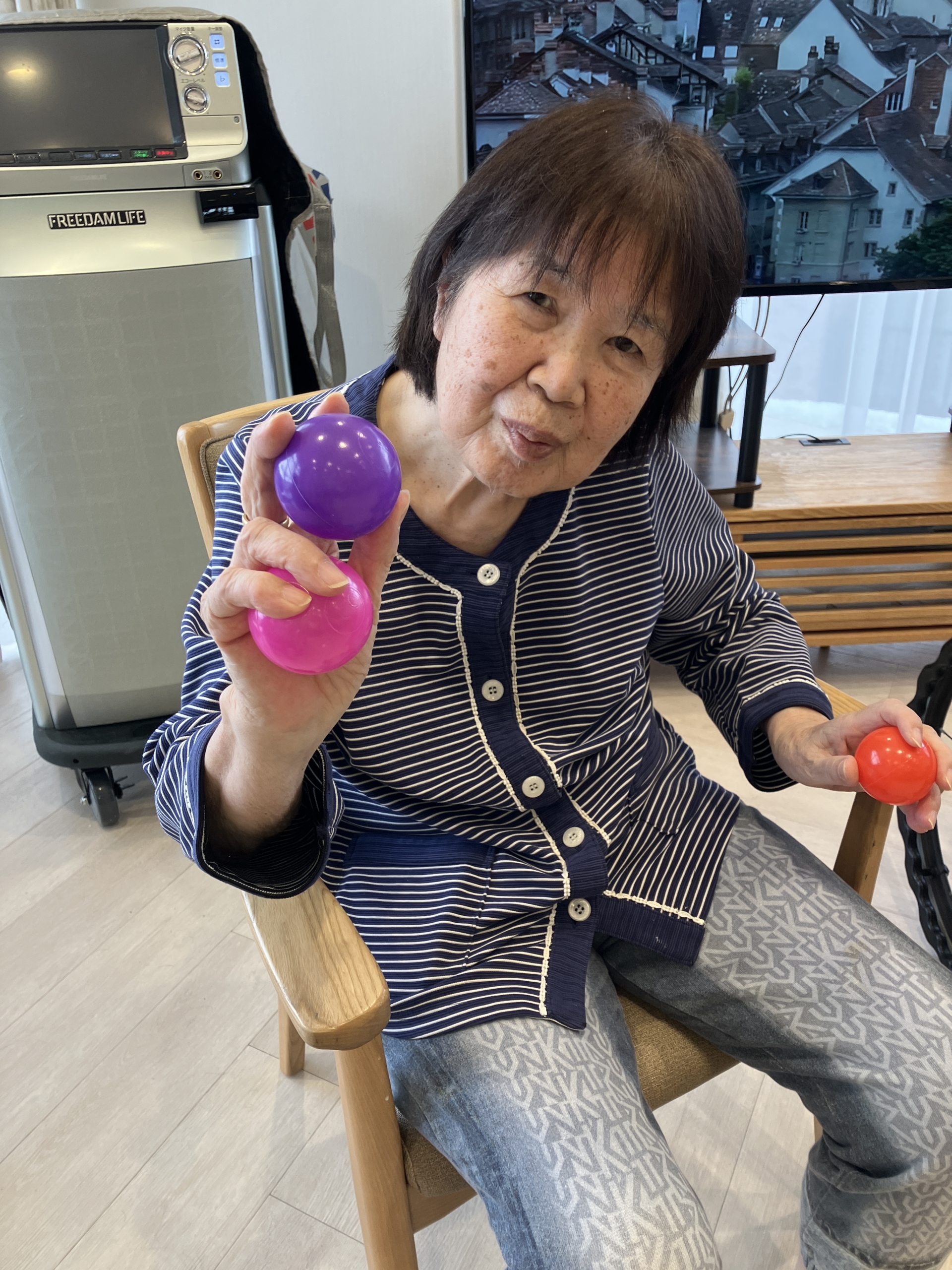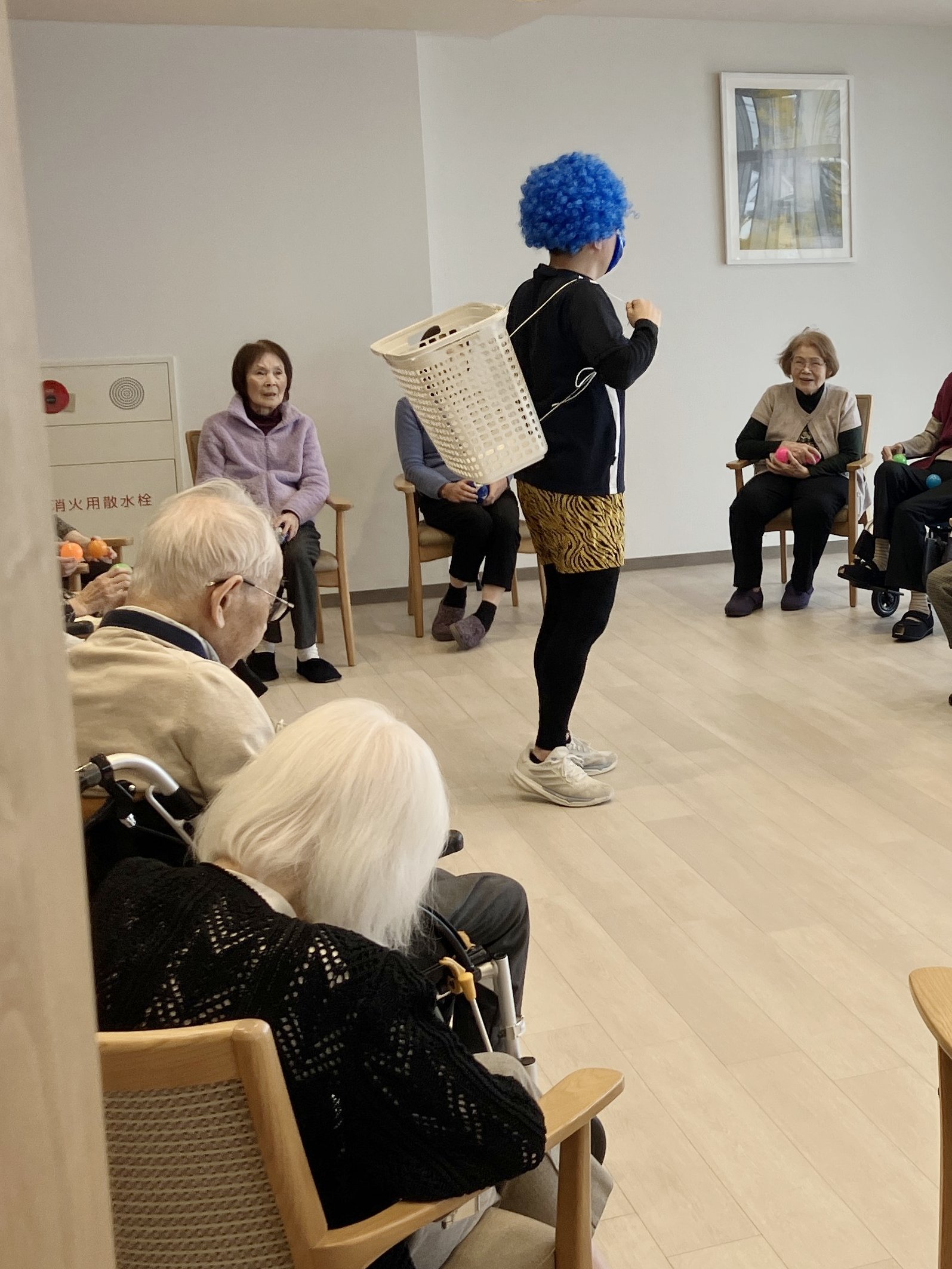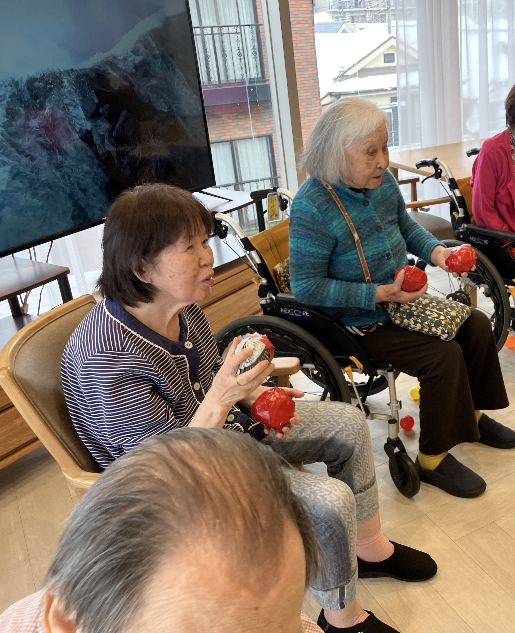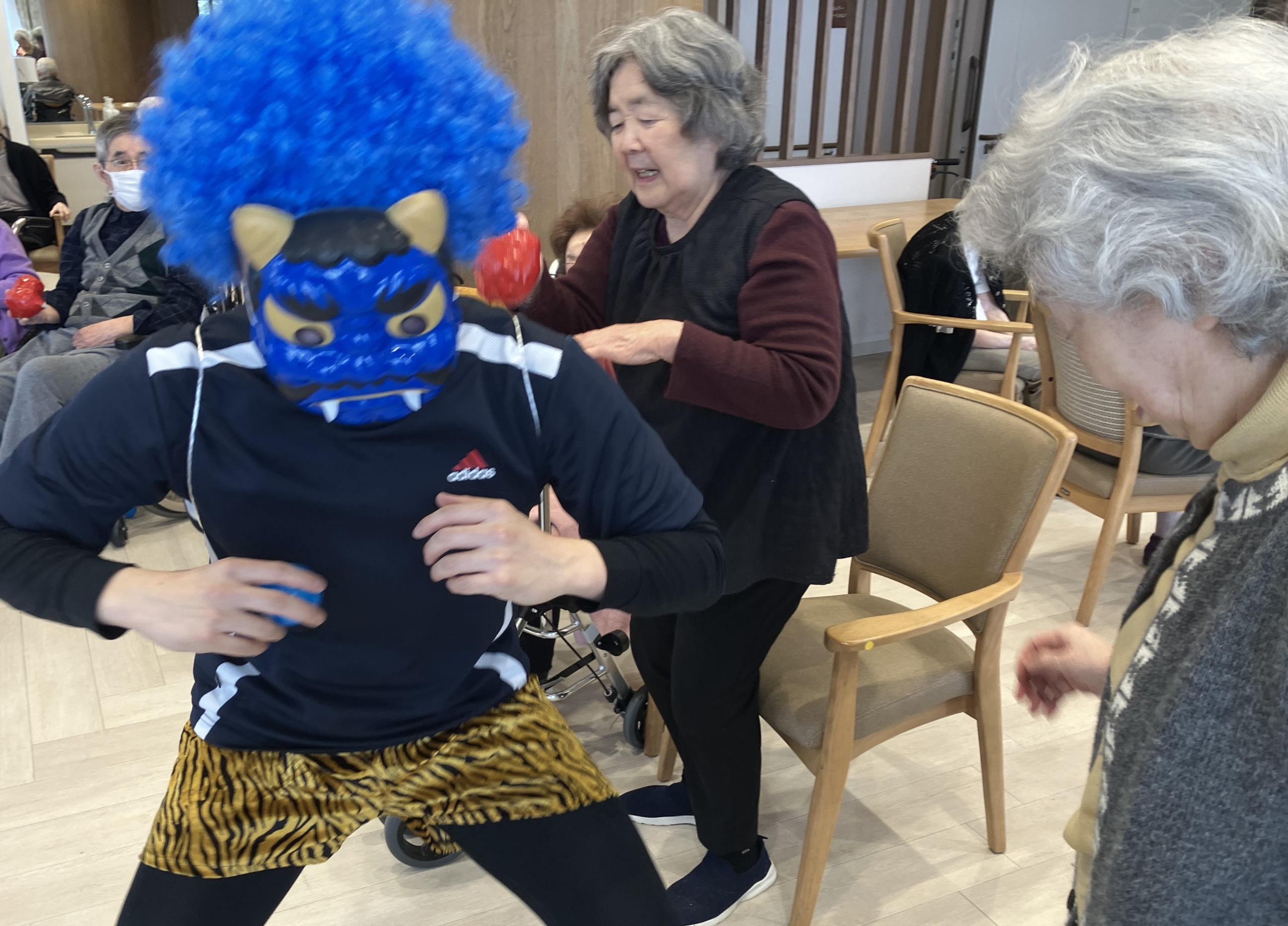節分イベントを開催しました。今年は豆の代わりにボールを用意し、鬼に変装したスタッフが背負った籠に向かって投げ入れる「節分玉入れ」を楽しんでいただきました。