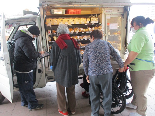 ニチイホーム柏の葉に、移動パン屋さんがやってきました。お客様には、お好みのパンを選んで購入していただき、久しぶりの“店頭で選ぶ楽しさ”を満喫されていました。