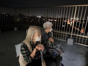 施設の屋上にて調布花火大会を観賞しました。多摩川から打ち上がる迫力ある花火に、ドン!という音が心に残る残る迫力ある花火でした。夏の終わりを彩る美しい花火に、「きれ~い」という歓声が飛び交い、皆様も心から楽しんでいただけたようです。