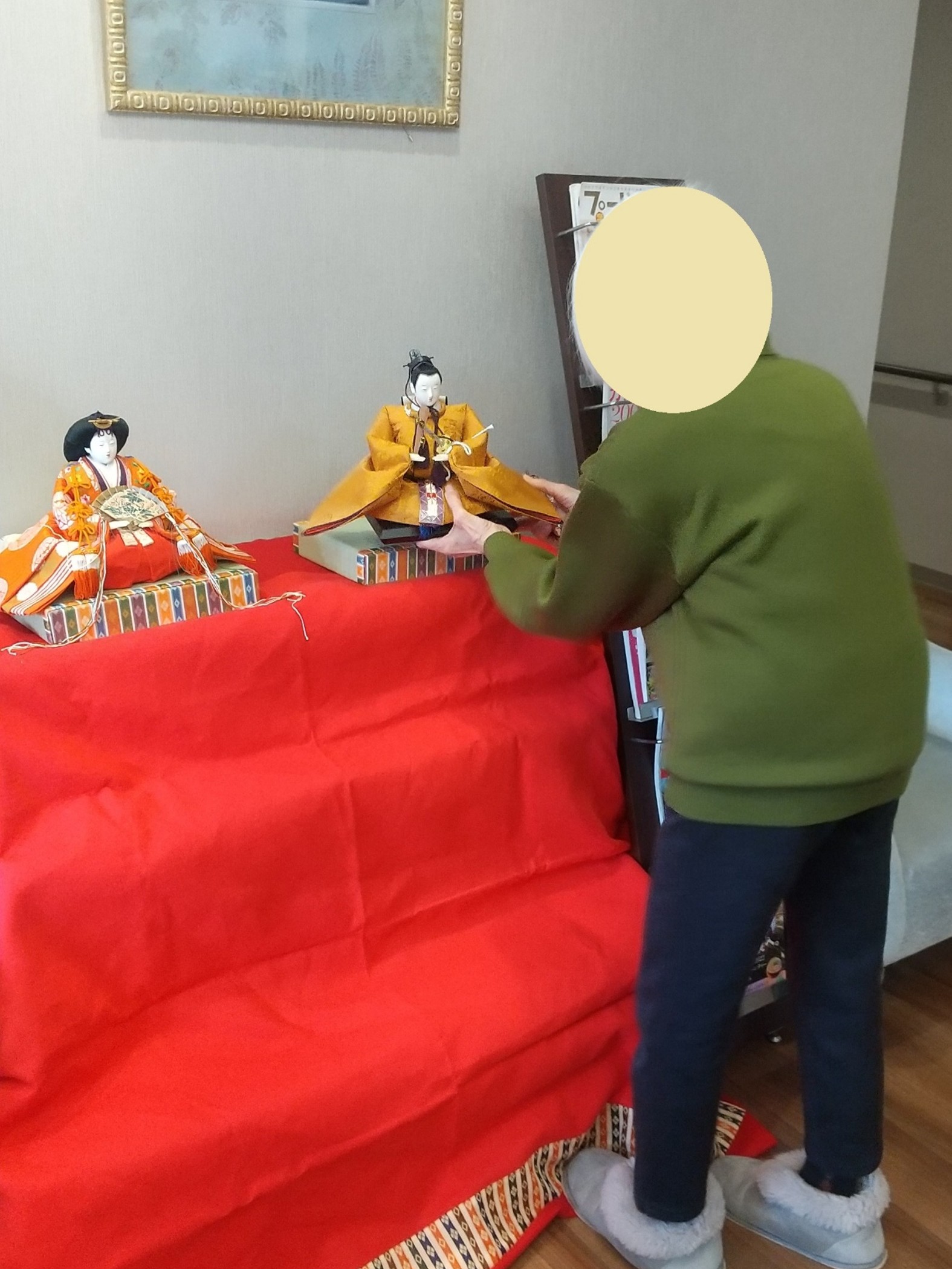 ひな人形の飾りつけ