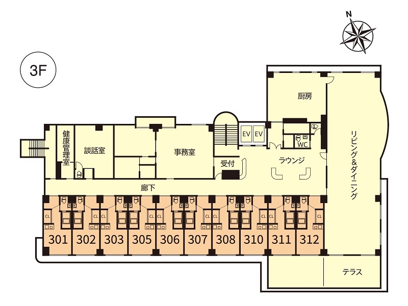 - 適切な介護サービス提供のため、一定の期間を設け、医師の判断、入居者様及び身元引受人の同意のもと、居室を変更していただくことがあります。それに伴い、居室の利用権も移行されます。転室の際に、構造もしくは仕様の変更、1名当たりの居室面積が変わることがありますが、入居金(前払金)及び月額利用料の変更はございません。