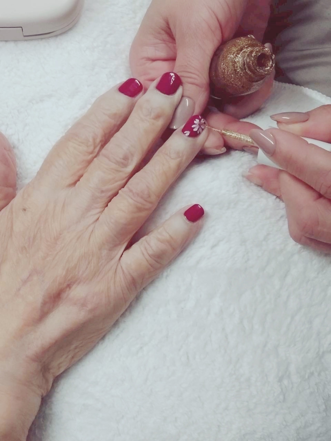 待ちに待ったネイルの日。何日も前から「次のネイルはいつかな?」「今度はどんな色にしようかな」と、キラキラした表情でお話しされていました。