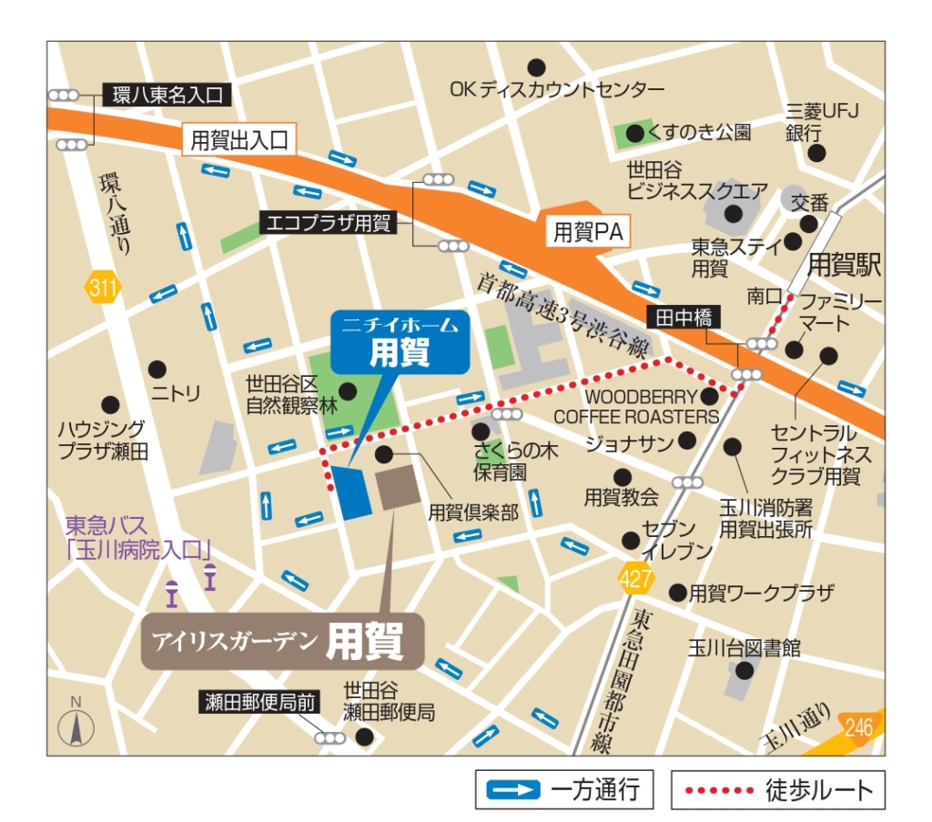 首都高速3号渋谷線「用賀」出入口より約2分(約850m) |