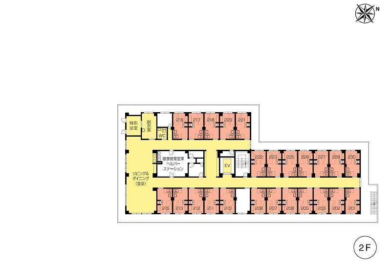 - 適切な介護サービス提供のため、一定の期間を設け、医師の判断、入居者様及び身元引受人の同意のもと、居室を変更していただくことがあります。それに伴い、居室の利用権も移行されます。転室の際に、構造もしくは仕様の変更、1名当たりの居室面積が変わることがありますが、入居金(前払金)及び月額利用料の変更はございません。